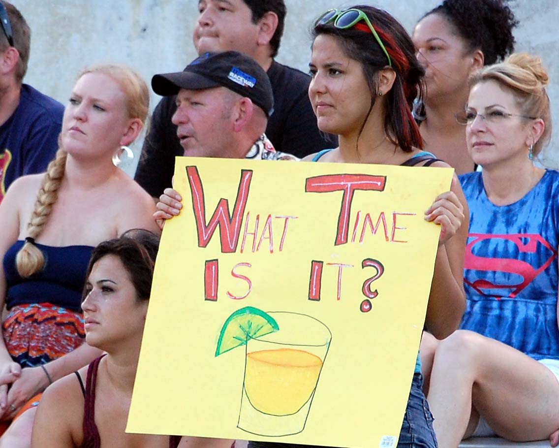After every score she, dressed as the mascot, went to the bottom of the stands where fans hoisted her over their heads and passed her hand-over-hand all the way to the top.